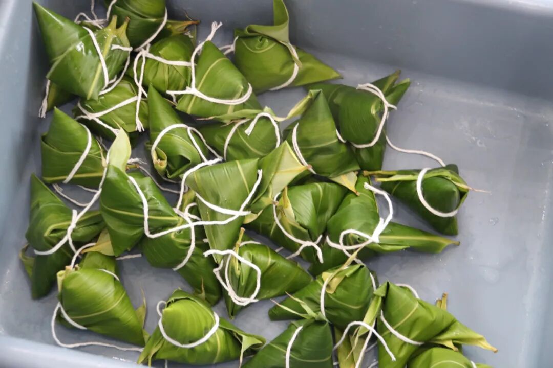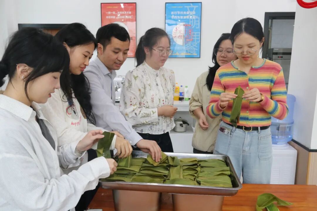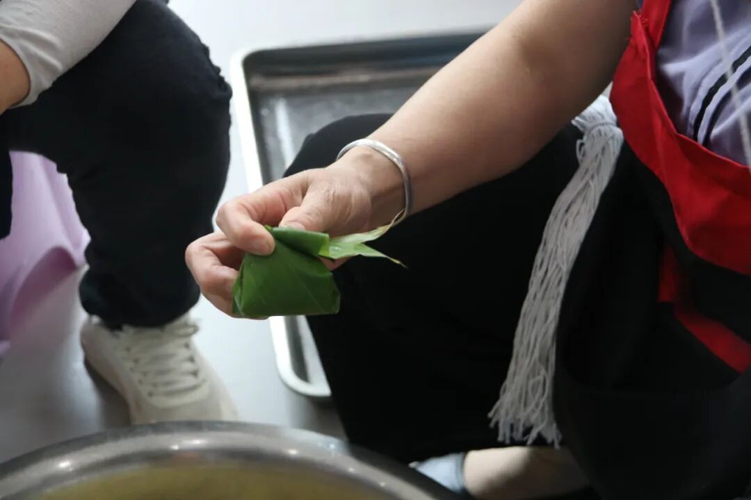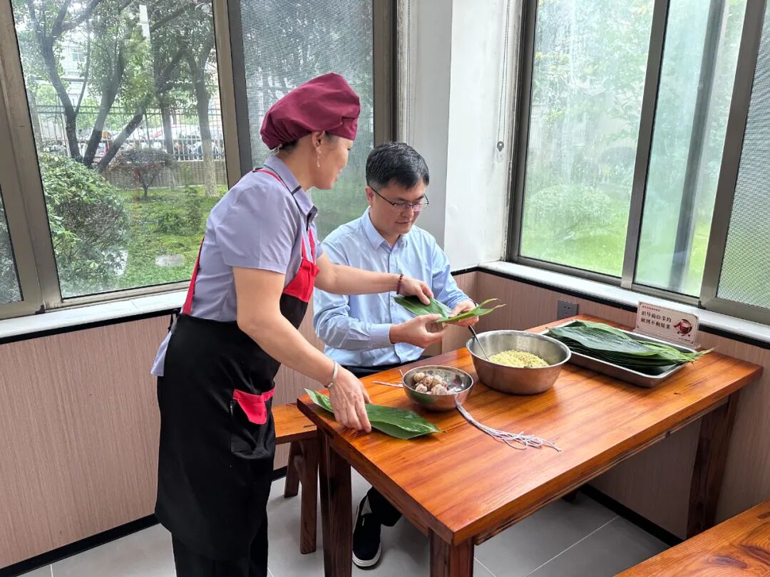 “粽子棱角分明,象征刚正不阿;糯米洁白无瑕,寓意清廉本色。”活动伊始,院党组书记、代检察长朱建干和检察干警们围坐一堂,亲手体验包粽子的传统技艺。翠绿的粽叶、晶莹的糯米、香甜的蜜枣在指尖流转,大家互相学习、协作配合,卷叶、填米、捆绳……一个个形态各异的粽子逐渐成型。有的干警打趣道:“包粽子就像办案,每一步都要严谨细致,扎紧‘廉洁线’,才能让‘馅料’不散、初心不变!”