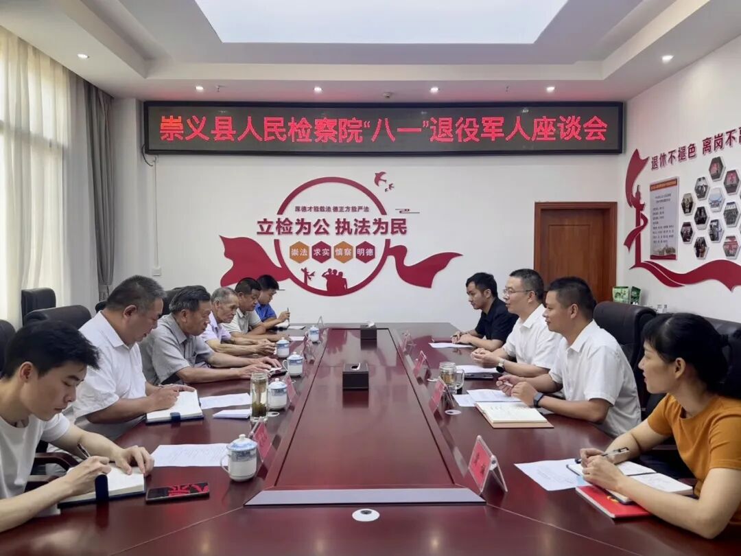 为庆祝中国人民解放军建军98周年,深入学习贯彻习近平总书记双拥精神,传承红色基因、赓续红色血脉,8月1日上午,崇义县人民检察院召开退役军人座谈会。会议由院党组成员、副检察长杨烜同志主持,党组成员、政治部主任陈隆飞、干警代表及该院退役军人参加会议。