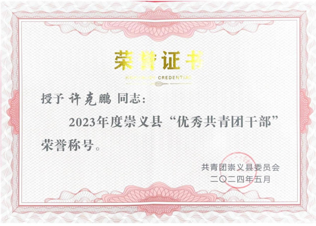 4月30日,共青团崇义县委员会召开崇义县“纪念五四运动105周年”青年座谈会,崇义县人民检察院五级检察官助理许克鹏荣获2023年度崇义县“优秀共青团干部”称号。