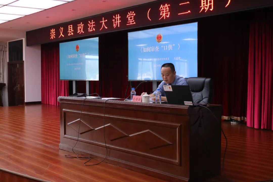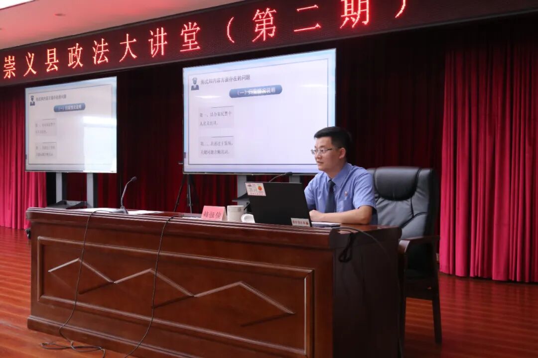 为进一步凝聚法治合力,全面提升政法工作质效。6月25日,崇义县人民检察院检察委员会专职委员吴学建、第二检察部副主任赖恒俊应邀在崇义县第二期“政法大讲堂”进行专题授课,全县100余名政法干警参加了学习培训。