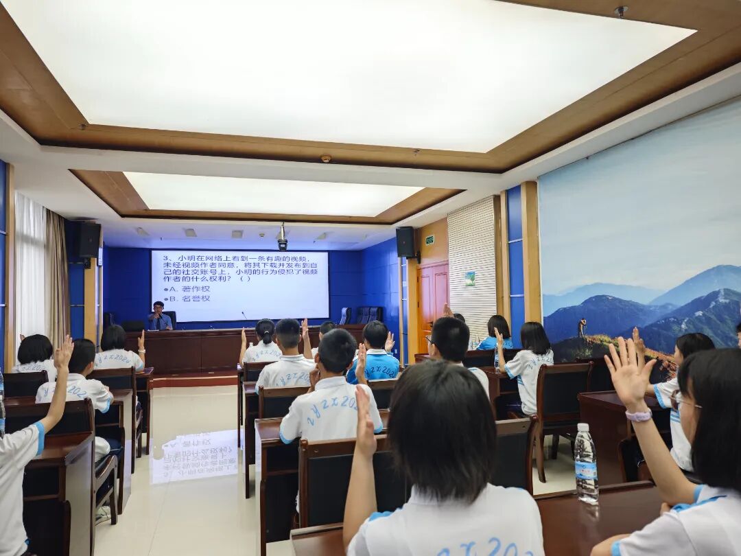 在民法典互动课堂上,检察干警深入浅出地为同学们讲解了《民法典》中与未成年人息息相关的法律知识,集中观看了民法典宣传片,并设置互动问答环节,在轻松愉悦的氛围中学习法律知识,通过学习同学们懂得了在自身权益受到侵害时,如何运用法律武器保护自己。