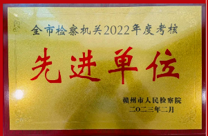 2月15日,崇义县人民检察院获“全市检察机关2022年度考核”先进单位。