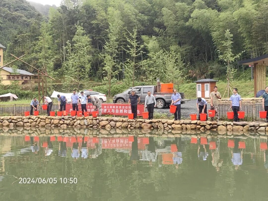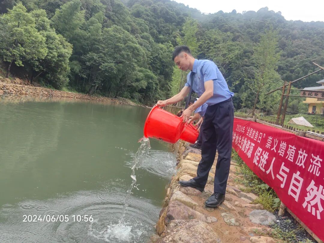 为深入贯彻习近平法治思想和生态文明思想,充分发挥检察公益诉讼职能,深化赣州市检察院“七彩练”检察品牌及我院“青绿竹乡”子品牌引领作用,落实“惩复联治”四字诀,6月5日,崇义县检察院联合县农业农村局、县河长办、县法院、县公安局、县林业局在阳明山国家森林公园开展“六•五世界环境日”增殖放流活动,助力章江流域生态保护。