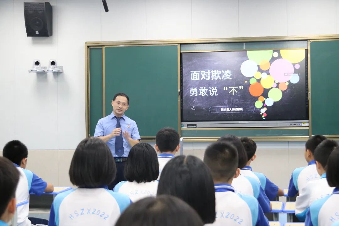 近年来校园欺凌案件频发,为防范和遏制校园欺凌,增强同学们正确应对校园欺凌的意识和能力,9月4日至11日,崇义县人民检察院的法治副校长们来到了学生身边,为他们带来“面对欺凌 勇敢说‘不’”的法治课。