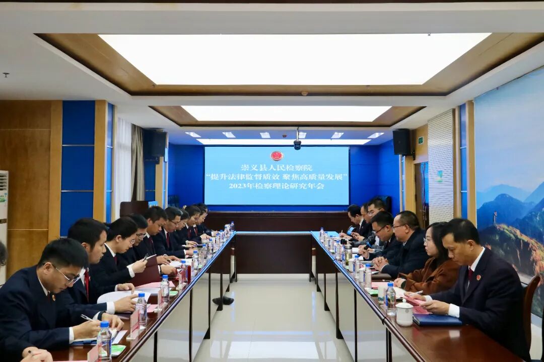 近日,崇义县人民检察院召开2023年检察理论研究年会,本次年会的主题为“提升法律监督质效 聚焦高质量发展”,通过总结提炼新时代检察工作创新发展中的好经验、好做法,不断提升法律监督质效,推动各项检察工作高质量发展。赣州市人民检察院综合业务部何燕春主任、江西理工大学法学院副院长孟春阳教授、崇义县人民法院廖宇振副院长、崇义县委保密和机要局胡朝东局长、崇义县法学会吉冬玲专职副会长等领导到会指导。